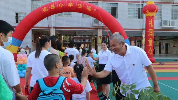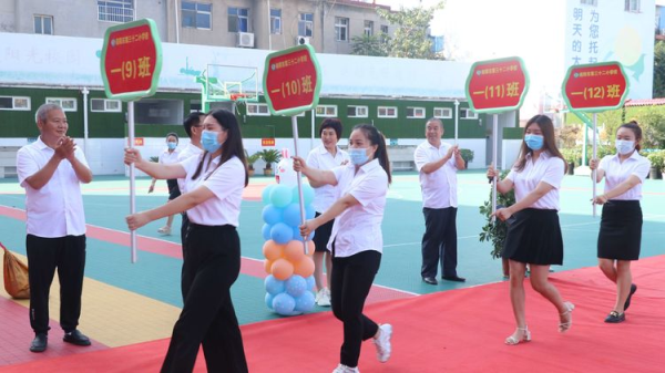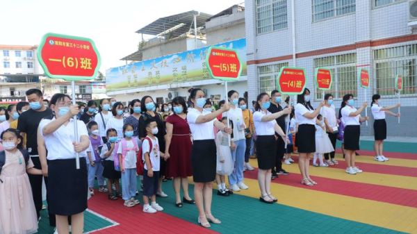 阳光壹路 幸福成长——南阳市第32小学举办新生入学礼凉爽的秋风,飘来阵阵硕果的清香;如诗的校园,传来声声的笑语欢唱。过了霏霏秋雨,终于在期盼中,姗姗而至。又是一个新学期,又是一年开学季。一路阳光向上,一路满怀期望,揣着憧憬,带着喜悦,又一批朝气蓬勃的学子,步入南阳市第三十二小学,又一批胸怀大志的少年,将在这儿宏图大展。 一年级新生们一个个精神饱满,充满期待,他们将幸福地参与到一年级小朋友人生中最有意义的一天——“入学礼”!9月12日上午,南阳市三十二小学校为2021级新生举办了特别的入学礼。 上午8:30,三十二小600余名一年级小朋友迎来了开学第一天。学校领导班子和一年级全体教师站在中央大道两旁,迎接他们和家长们的到来。