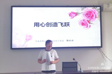 班主任是学校学生管理工作的重要角色。班主任全面负责一个班学生的思想、学习、健康和生活,是一个班的组织者、领导者和教育者,也是一个班中全体任课教师教学、教育工作的协调者。该校优秀班主任郭欣欣老师以“用心创造飞跃”为主题进行班级管理经验分享。