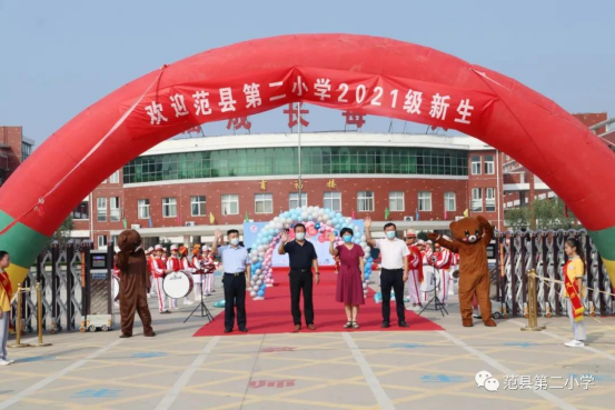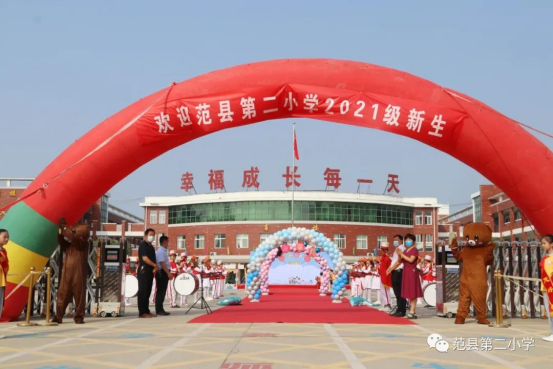 濮阳市范县第二小学举行2021年一年级新生入学典礼时间:2021-09-15 2021年9月13日上午,濮阳市范县第二小学隆重举行了“今天我是小学生啦!”一年级新生入学典礼。 踩着隆隆的鼓点,带着满满的欢喜,小萌娃们和爸爸妈妈挽着手,踏上红地毯,走过漂亮的拱门,成为第二小学的一员,开启缤纷绚烂的小学生活。这里,将是他们梦想启航的地方,一个将要赋予新的生命意义之所。