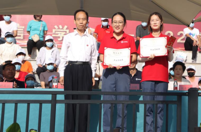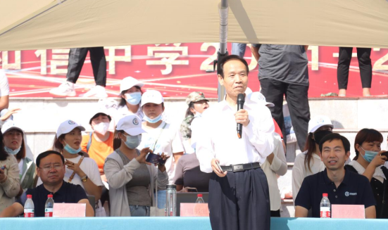 9 月 10 日,东联和信中学隆重举行 2021-2022 学年开学典礼暨教师节表彰大会,阜阳市副市长、阜阳市经济技术开发区党工委书记刘玉建,阜阳市委教育工委书记、阜阳市教育局局长刁卫华,莅临指导工作、慰问学校教师。