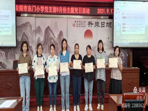 安阳市东门小学党支部开展9月主题党日活动时间:2021-09-18 9月17日,安阳市东门小学党支部开展了9月份主题党日活动。 李晓平、张伟山、许红娜三位同志带领党员同志学习了党史书籍《习近平关于“不忘初心、牢记使命”论述摘编》,主要学习了习近平总书记在河北承德考察时的重要讲话精神和在中央党校(国家行政学院)中青年干部培训开班式上的重要讲话精神。 支部书记韩建勇同志组织党员进行了第三季度的党课学习。韩书记在党课学习中谈到,学习党的百年历史要以习近平总书记关于党的历史的重要论述为指导。同时,学习党的百年历史要准确把握党的历史的主题和主线、主流和本质。在王素芳副书记的组织下,全体党员按规定缴纳了第三季度的党费。党组织对前期在党员培训中,圆满完成学习任务的党员颁发结业证书。 通过学习,党员深刻认识到要贯彻习近平新时代中国特色社会主义思想,就要结合党史学习,引导广大党员把党的历史学习好、总结好、传承好、发扬好,做到学史明信、学史增信、学史崇德、学史力行。并表示:在今后的工作中,时刻以党员的身份鞭策激励自己,不忘初心、牢记使命,充分发挥党员先锋的模范作用,为教育工作建设贡献自己的力量。 |