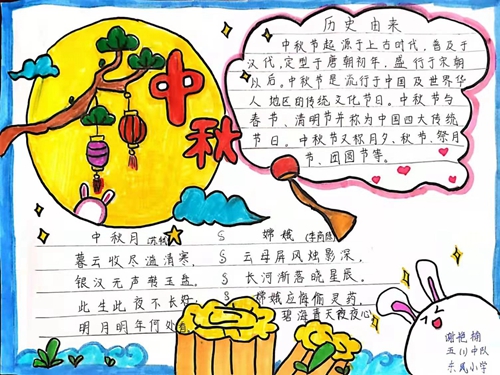 文峰区东风小学少先队中秋节主题教育活动时间:2021-09-18 为使“中秋节”这一中华优秀传统文化得到传承和弘扬,使热爱祖国、热爱家乡、热爱传统文化的观念植根于队员心中,文峰区东风小学少先队于9月15日至9月18日开展了“月圆家圆国圆,传承红色经典”中秋节主题活动。 画笔绘中秋 五(3)中队、六(3)中队的队员们制作了内容丰富的黑板报,礼赞我们亲爱的祖国,感恩亲人,彰显了队员们对美好生活的希冀! 五(1)中队、五(2)中队、六(1)中队、六(2)中队的队员们提前搜集了有关节日起源的故事和口口相传的传统民俗、逸闻趣事,并将自己的成果精心呈现在一张张精美的手抄报上。 四年级的队员们用手中的画笔,将自己对中秋节的理解以及对亲人的祝福融入到了绘画作品里。一幅幅充满童趣的作品,一张张色彩斑斓的画卷,表达着队员们心中的“团圆美好”。 队课弘传承 三年级的中队辅导员组织队员们开展了以中秋节为主题的少先队活动课,弘扬中秋节的传统习俗和文化知识,进一步加强爱国主义教育,使学生感受传统文化的魅力。 诗歌诵中秋 一、二年级的队员们真情朗诵了有关中秋节的古诗名句,以此来感受诗人对家乡、亲人深情的思念。 通过本次活动的开展,队员接受了一次中华传统文化“润物细无声”的熏陶,让队员们在度过中秋民族传统节日的同时感受中华传统节日文化魅力,给他们不一样的文化感受,增强了民族自信心、自尊心和自豪感。