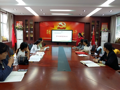 康伟、李卫霞老师根据教研活动主题,对单词课和句型课的教学流程进行专项培训。全体教师一起探讨在教学中的实践性和可操作性,合理运用操练环节中多种多样的练习方法,升华主线,融合知识目标。