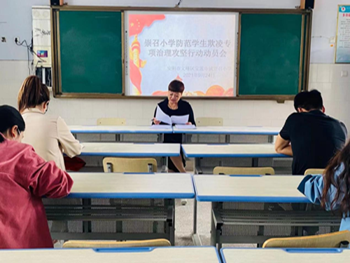文峰区崇召小学召开防欺凌专项治理攻坚行动动员会时间:2021-09-24 为进一步净化校园环境,杜绝校园欺凌行为,营造和谐育人氛围,促进学生身心健康发展。9月24日,文峰区崇召小学召开了防欺凌专项治理攻坚行动动员会,并集体学习了教育系统防范学生欺凌专项治理行动工作方案。 会后,各班班主任召开主题班会,介绍了什么是欺凌,怎样预防欺凌。教育学生要珍惜友谊,不以大欺小,不要以强欺弱,要与人为善、互相帮助、远离欺凌、提高自我保护意识。各班全面自查、督查和总结,对于发生在学生之间蓄意或恶意通过肢体、语言等手段,实施欺负、侮辱造成伤害的校园欺凌行为绝不姑息。 通过活动,促进了学生身心健康发展,促使学生逐步形成正确的价值观和是非观。增强了学生的安全意识、法律意识,为共同创建和谐文明的校园奠定基础。 |