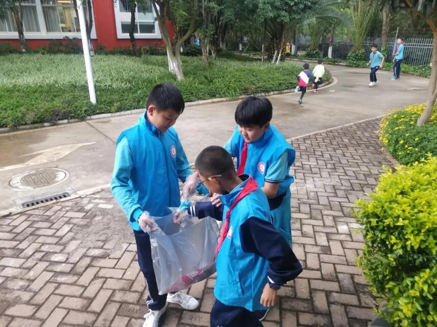 云南省昆明市中华小学:行动暖人心,我们是小小志愿者时间:2021-09-26 昆明市中华小学,日前开展了“行动暖人心,我们是小小志愿者”活动,六(4)班的学生在班主任老师的带领下,有的拿煤炭夹,有的拎塑料袋,主动捡垃圾,同学们兴致勃勃,一个个干得热火朝天,每个人的头发下面都流淌着晶莹的汗珠,每个人的脸上都洋溢着幸福的笑容。 “我不丢,我来捡”的理念渐入每个中华学子的心中。今天,每个孩子都坚持把灌木丛里的垃圾捡得干干净净。尽管刚下过雨不久,地面还是粘粘的泥巴,垃圾也多嵌在泥巴中,但没有一个同学面露嫌弃的表情,只要见了垃圾,都会毫不犹豫地捡起来,这一幕幕显得多么弥足珍贵! 经过这次的志愿活动,同学们虽然捡得有些疲惫,但在精神上却是很享受的。把志愿者活动和做环保结合在一起,不仅可以学习发扬同学们吃苦耐劳,无私奉献的精神,还维护了校园环境的清洁,最重要的是通过我们的努力,培养了孩子们动手实践的能力,进一步树立了“我为人人,人人为我”的新风尚。爱护我们的家园,人人有责,需要大家不断地努力。