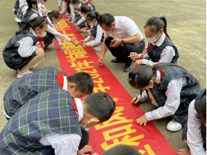 活动中,校长杨传伟及校领导组部分成员、老师和少先队员们利用国庆来临之际以个人名义,开展“向国旗敬礼、做一个有道德的人”签名寄语活动,大家通过签名,留言寄语,抒发感言,表达了自己对祖国母亲的热爱。(商丘市示范区和风小学 黄丽娜) |