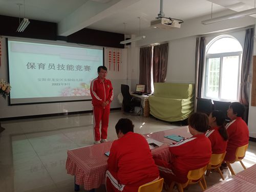 亮技能 展风采——龙安区实验幼儿园开展保育员技能比赛时间:2021-09-27 为提高保育员的理论与业务水平,更好的为幼儿服务。9月27日,龙安区实验幼儿园组织开展了保育员技能比赛活动。 本次比赛包括理论和答辩两部分。比赛中保育教师根据理论与日常工作经验相结合,在规定时间内完成了笔试答题和现场答辩。保育教师认真的态度、良好的精神面貌得到了园领导的肯定。参赛教师根据比赛情况做个人小结,并针对比赛题目进行讨论,真正做到了以赛促学,以赛促保。同时也纷纷提出了自己的建议,共同提高常规工作技能。 通过比赛,使保育员的专业基本功更扎实,提高了优质服务意识,同时对于自身工作的重要性和正确规范操作也有了更深刻的认识,彰显了龙安区实验幼儿园 “保教结合,教养并重”的良好育儿氛围。 |