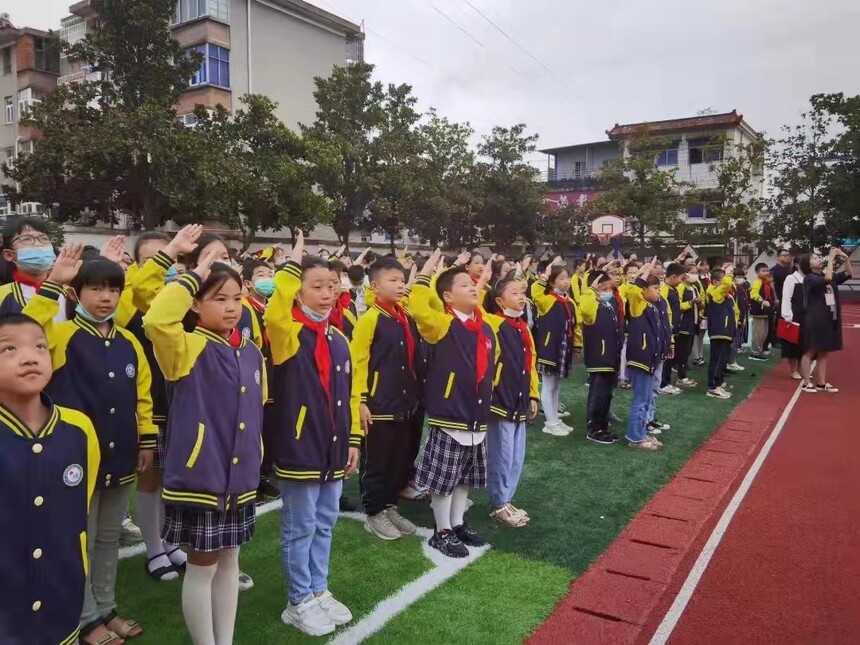 ÎªÂ¡ÖØÇì×£ÖлªÈËÃñ¹²ºÍ¹ú³ÉÁ¢72ÖÜÄ꣬´óÁ¦³ªÏìÀñÔÞÐÂÖйú¡¢·Ü½øÐÂʱ´úµÄÇà´ºÖ÷ÐýÂÉ¡£9ÔÂ27ÈÕÔçÉÏ£¬ÐÅÑôÊЛ¸ºÓÇøµÚһСѧ¾ÙÐÐÁË¡¶ÎÒÓë׿¹ú¹²³É³¤¡·Ö÷ÌâÉýÆìÒÇʽ¡£