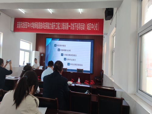 龙安区西八里小学信息技术应用能力提升工程线下巡导培训汇报活动时间:2021-09-29 根据《信息技术应用能力提升工程的实施意见》精神,结合龙安区项目进展实际情况,为助力项目校构建以校为本、基于课堂、应用驱动、注重创新、精准测评的教师信息素养发展新机制,实现“三提升一全面”的总体培训目标,确保信息技术应用能力提升工程2.0的实施成效。9月29日,龙安区西八里小学进行了第一次专家线下巡导活动。校长王风清、信息骨干教师张红福、周利军参加了培训会。 汇报会上,信息骨干教师张红福从学校基本情况、教师需求问卷调查与分析、信息技术应用能力提升工程培训的具体做法,教师教学优秀案例展示以及学校近期发展规划等方面做了汇报。河南省信息技术应用能力提升工程项目指导专家赵相文对西八里小学前一阶段工作进展情况进行了点评和指导。赵老师清晰地梳理出了项目实施中存在的问题并提出了合理建议。王校长指出:信息技术应用能力提升工程项目在教学实施中虽然存在困难,但相信教师一定会迎难而上。并鼓励全体教师在教育教学实践中大胆应用,实践创新。 通过活动,对前一段工作做了反思、总结和汇报,专家对项目实施进行点评和建议后,为今后西八里小学推进信息技术应用能力提升工程下阶段工作指明了方向。