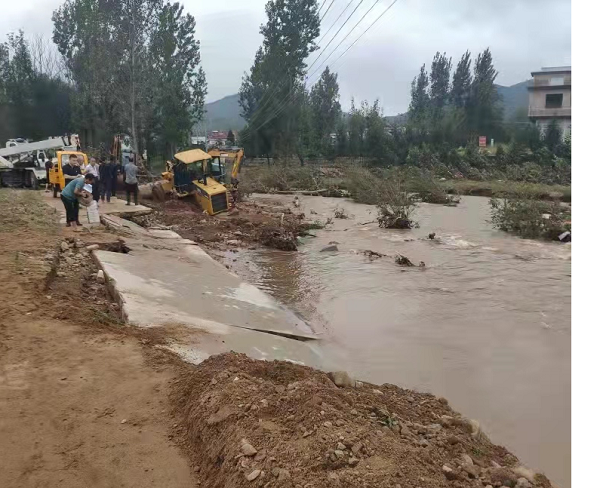 人民视点河南讯(倪申 张琴 通讯员 廖涛 高铭远)9月24日8时至25日9时,河南省南召县遭遇强降雨,最大降雨量达425毫米,小店乡309毫米。突发强降雨,河道水位暴涨接近最高水位线,全村水电、通讯、部分道路中断。汛情就是集结号,小店乡川店村第一书记王玉冰第一时间冒雨查看险情,一直主动坚守在任职村,团结一致,逆风而行。 当大量河水倒灌入村,人民群众生命和财产受到严重威胁时,王玉冰马上组织“两委”干部启动应急预案,带领村干部群众开展防汛自救。挨家挨户敲门联系并组织群众疏散转移,确保每一位村民安全。接着,他马不停蹄到村川店河、褚湾河、洪山水库、青杠眼水库查看水情。由于川店河上游泄水,同时夹带的大量水草和杂物严重堵塞了桥洞,桥面水位暴涨,他立刻组织党员干部和群众用挖掘机对川店河道漫水桥桥眼进行清淤,清理水草和杂物。机械无法清理的地方,党员干部冒雨跳入河中进行清理,经过2个小时不间断的清理,顺利疏通了河道。通往李八湾道路受阻部分地方塌陷,在危险路段组织设置警示牌。