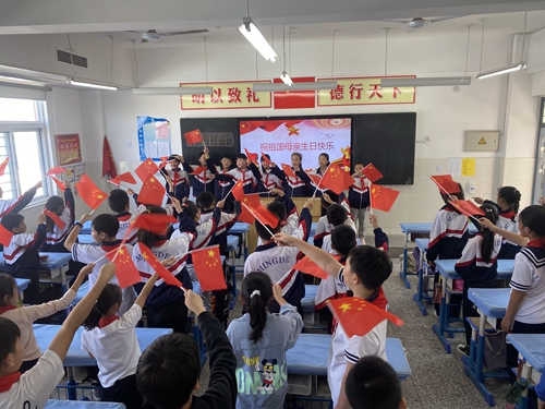 队员通过看视频、讲红色故事等形式了解党的百年光辉历史;用朗诵、歌唱、手抄报等形式歌颂伟大的祖国在中国共产党的领导下取得的辉煌成就;队员纷纷立下青春的誓言:请党放心,强国有我!齐唱《我和我的祖国》,共同祝福祖国母亲72岁生日快乐。