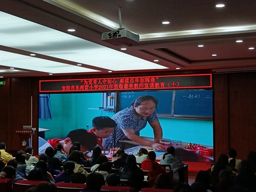 学习道德模范 弘扬榜样精神——安阳市东南营小学致敬最美教师宣讲教育活动时间:2021-10-08 一个时代需要一个时代的标杆,一个国家需要一个国家的旗帜,道德模范就是新时代的精神标杆,而“最美教师”便是全体教育人的旗帜和榜样。10月8日,安阳市东南营小学组织全体教师在南校区学术厅召开师德教育专题会议。 会上,教师再次集体观看了内黄县特岗教师邓慧坤的事迹。邓老师犹如一股春风拂过田间,为农村孩子看向外面的世界打开了一扇明亮的窗子,也点燃了他们五彩的梦。她带头践行五育并举,只为芬芳和温暖孩子们幸福美好的童年。她为偏僻乡村小学带去新鲜血液,让那里的孩子眼里有光,心里有梦。她是最美教师的代表,她似灯塔给教育工作者指引了方向。老师们专注地看着、凝神地听着,她的坚持和坚守尽管平凡,却也是教育最坚实的脊梁。 邓慧坤老师在平凡中书写着伟大,深深震撼着全体教师的心灵。全体教师表示:一定要以“最美教师”为榜样,投身教育事业不动摇。为了自己心中那份执著的教育梦想,为了中华民族伟大复兴的强国梦,定会努力拼搏,精心育人,塑造教师光辉形象,争做最美教师! |