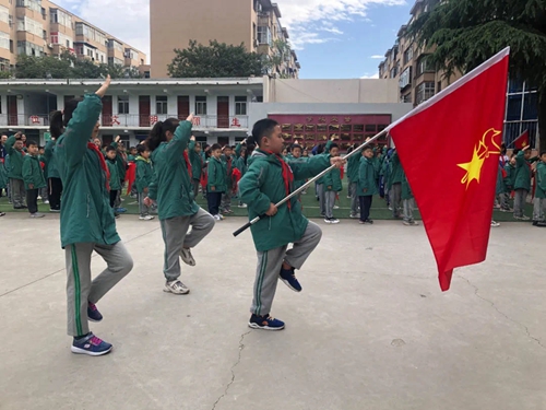 安阳市东南营小学2020级第二批新队员入队仪式时间:2021-10-13 10月13日,安阳市东南营小学以“请党放心 强国有我”为主题,隆重举行2020级第二批新队员入队仪式。 入队仪式上,老队员带领新队员们再次回溯中国少年先锋队的光辉历程,在演讲中再现了少年儿童的革命组织英勇无畏,积极进取,誓为先锋的斗争精神,让队员们再次感受中国少年先锋队蓬勃发展,为新入队的队员们上了一节形式丰富、寓意深刻的队课。 红色旗帜,代代相传,三年级少先队员们为新队员们戴上了鲜艳的红领巾。他们由新队员代表带领,在星星火炬旗帜下庄严且自豪的宣誓,从此成为一名光荣的少先队员。校区领导谢主任对新队员表示祝贺,新队员代表上台发言,表示要在星星火炬的照耀下茁壮成长! 此次活动,进一步壮大了少先队的队伍,让新队员们懂得了少先队员所肩负的光荣使命。相信他们一定会在星星火炬的指引下,全面发展,健康成长,为中华民族伟大复兴的中国梦贡献力量!