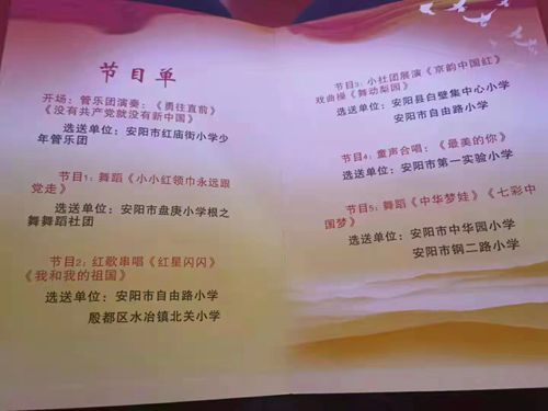 为深入贯彻落实《中共中央关于全面加强新时代少先队工作的意见》,强化少先队育人作用,展现新时代少先队员朝气蓬勃、积极向上的精神面貌,安阳市少工委联合市文广体旅局在全市范围内开展“请党放心,强国有我”红领巾剧场首映礼活动,10月12日,安阳市红庙街小学少年管乐团应邀参加了本次演出。