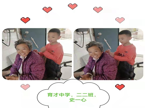在家里,学生帮助爷爷奶奶敲背、捶腿、端茶、洗脚,帮助长辈分担家务,并用最美的声音为爷爷奶奶送上诚挚的节日祝福,满满的爱在活动中弥漫开来。