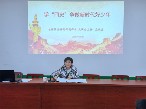 龙安区领导到安阳市第二十三中学讲思政课时间:2021-10-15 10月15日,龙安区委宣传部副部长、文明办主任孟庆霞来到安阳市第二十三中学,为学生讲《学四史,争做新时代好少年》的思政课。 孟主任从中国共产党的四个历史时期谈起,即:开天辟地、改天换地、翻天覆地、惊天动地,高度概括了中国共产党自成立之日起,如何完成救国大业、完成兴国大业、推进富国大业,推进并将在本世纪中叶实现强国大业。孟主任通过一个个历史片段,给学生深刻讲解红船精神、井冈山精神、长征精神、红旗渠精神、雷锋精神、焦裕禄精神、抗洪精神、抗疫精神等我党的宝贵精神财富。 从来没有从天而降的英雄,只有挺身而出的普通凡人,孟主任给大家讲述了区马投涧镇“端锅侠”靳利勇老师见义勇为的先进事迹、2021年安阳市第四届好少年李奕萌等先进事迹,学生深受鼓舞,身边的榜样力量催人振奋。在讲解了区西洪沟村八旬老人赵忠福和老伴张娥梅为戍边官兵手织万条围巾的故事后,同学们无不为老人爱国拥军的平凡壮举而感动。并向学生发出号召,鼓励学生学好党史,争做新时代好少年。 青春有梦,不负韶华。思政课走进校园,更好的落实学校立德树人根本任务! |