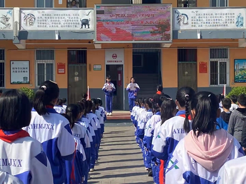 安阳市红庙街小学新少先队员入队仪式时间:2021-10-15 10月13日是中国少年先锋队建队72周年,在此神圣的时刻,安阳市红庙街小学隆重举行了新队员入队仪式。 阳光下,我们激情昂扬,少先队员们意气风发,步伐矫健地向着队旗走来,192名新队员在队旗下见证下完成了这一荣的使命,加入中国少年先锋队。预备队员在中队辅导员李晓月主任的教导下,认识队旗,会敬标准的队礼,正确佩戴红领巾,了解少先队的光荣历史,学习少先队的基本知识。随着激昂的少先队出旗曲,五年级的少先队员为新队员佩带上鲜艳的红领巾。面对庄严的少先队旗,少先队员们进行了庄严的入队宣誓。在老队员的引领下,新队员正式加入了这支队伍,成为了中国少年先锋队队员。铿锵有力的宣誓词、坚定的眼神、标准的队礼,都让新、老少先队员们进行了一次心灵的洗礼,更加坚定了少先队员的使命。 红领巾是少先队员的标志,是无数英雄先烈的鲜血染红的。鲜艳的红领巾映红我们的脸庞,火红的队旗引领我们前进。相信每一位少先队员都会铭记此刻,听党的话,做好少年,请党放心,强国有我! |
