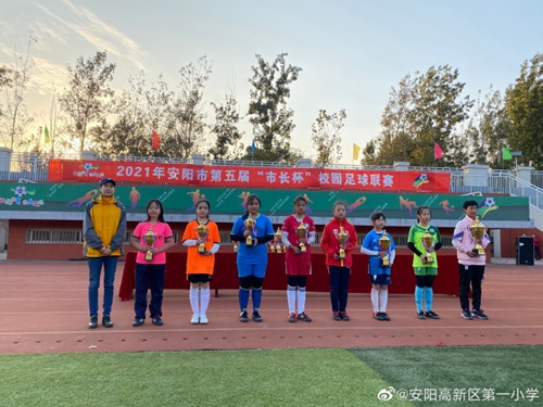 捷报传来师生喜 隆重表彰再努力——高新区第一小学对女子足球队进行表彰时间:2021-10-18 10月18日,安阳高新区第一小学举行表彰仪式,隆重表彰为学校获得荣誉的女子足球队。在10月12日-17日进行的安阳市第五届“市长杯”校园足球联赛中,高新区第一小学女子足球队第一次参加比赛,初生牛犊不怕虎,敢打敢拼,不骄不馁,最后跻身四强,并获得第四名的好成绩!可喜可贺! 10月12日,2021年安阳市第五届“市长杯”校园足球联赛在龙安高中拉开帷幕。10月15日,高新区第一小学女子足球队首遇胜利路小学女子足球队。比赛中,队员们顽强拼搏,不骄不躁,积极拼抢,敢于进攻,以2:1的比分赢得比赛,以小组第二的身份进入下一轮比赛,为此次“市长杯”之行创造了良好的开端。10月16日,在上午抱憾0:3输给外国语小学队后,队员们胜不骄,败不馁,下午1:0拿下和育才小学的比赛,挺进四强。四强赛中再次和上届冠军队外国语小学相遇,虽然拼劲全力,仍以0:3负于对手。在最后和林州第二实验小学北校进行的争夺第三名的比赛中,队员们靠顽强的毅力将0:0的比分维持到最后,进入点球大战,最终获得了第四名。 表彰仪式上,校领导对队员们取得的成绩表示热烈祝贺,对队员们敢打敢拼、英勇顽强的意志力表达由衷的钦佩。 希望女足队员们再接再厉,再立新功!女足姑娘们,加油! |