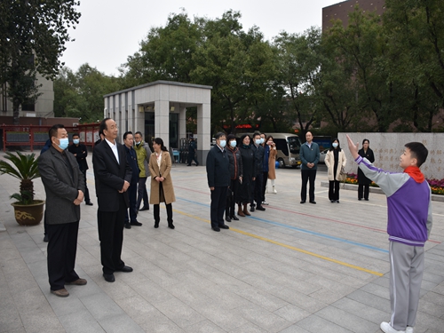 从党史中汲取力量 在指导下绽放光芒——安阳市三官庙小学迎接省委党史学习教育指导工作组时间:2021-10-20 为深入学习贯彻习近平总书记“七一”重要讲话精神,持续开展以党史为重点的“四史”宣传教育,河南省委党史学习教育第五巡回指导组苏彦文、钟静、周华、李国杰、张大强、王长青在省文联党组成员、副主席王朝纪组长的带领下,于10月20日上午,来到安阳市三官庙小学检查指导工作,陪同检查人员有安阳市委宣传部副部长张卫东、四级调研员马峰梅、教育局党组成员刘志军、教育局党办主任朱思斌,以及文峰区宣传部长冯滨、教育局局长靳建锋、教育局工会主席李卫霞。 在副校长李献红、宋庆华和少先队员的讲解中,各位领导了解了学校的发展沿革和文化建设,参观了红色长廊、校史馆以及正在建设中的传承红色精神的“魅力学堂”,来到党建室,观看《传承红色基因,培育时代新人》宣传片,翻阅“四史”宣传教育落实情况。校长李红婷向各位领导介绍了学校“四史”学习教育落实情况。 习近平总书记指出,历史是最好的教科书,也是最好的清醒剂。党史、新中国史、改革开放史、社会主义发展史是中国共产党领导人民在长期的探索、奋斗与发展中形成的政治财富,是中国共产党百年辉煌历程中的精神瑰宝。三官庙小学以传承红色基因培育时代新人为主线,将“四史”学习教育和与大思政课、师德师风建设、 “三会一课”、道法课程、校本课程、阵地建设有机融合,使三官庙小学在红色精神的滋养下迈着坚实的脚步,走在培育时代新人的征途上。 各项汇报展示给工作组留下了深刻印象,指导组对学校“四史”学习教育和传承红色精神工作给予高度评价,称赞安阳市三官庙小学的思政教育有特色、有亮点、有内涵。 |