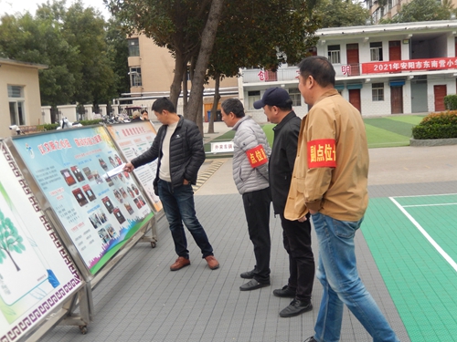 安阳市东南营小学迎接创文工作检查时间:2021-10-20 10月19日,文峰区文明办领导小组莅临安阳市东南营小学,进行了全面检查、督导工作,检查的内容主要包括查阅档案资料和实地测评。 东南营小学校长冯芳全程陪同检查工作。检查组对校园卫生,校园文化,宣传版面、标语,学校图书室,心理咨询室等进行了全方位实地查看,对整洁的校园、优美的环境、浓浓的宣传氛围给予高度认可。 检查组依据《河南省中小学文明校园(标兵)测评体系》逐项对标认真检查,丰富的活动、规范的整理受到检查组的高度赞扬。检查组希望学校从细节着手,进一步加强校园硬件设施的改造力度,高标准、严要求做好创文各项工作,让美丽的校园成为师生成长的沃土。 冯校长表示:将根据上级领导的具体指导和要求,结合自身实际情况,全力推进文明校园创建,继续优化环境,为安阳市东南营小学的持续发展不断努力! |
