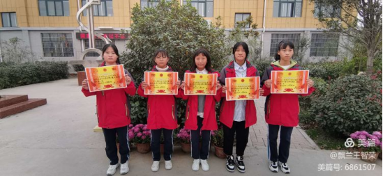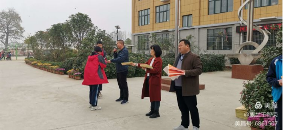 西姜寨乡第一初级中学语文组组长尹刘生老师、王世军副校长、李艳红老师为孩子们颁奖。(开封市西姜寨乡第一初级中学供稿) |