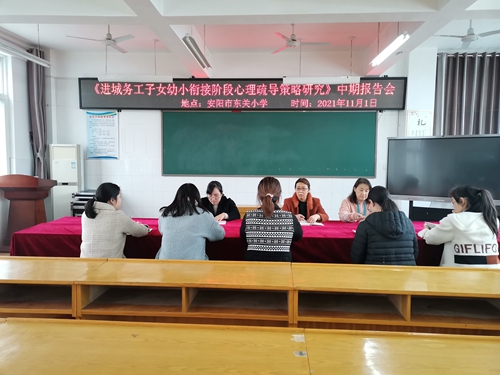 安阳市东关小学幼小衔接专项课题组召开中期汇报会时间:2021-11-03 安阳市东关小学幼小衔接专项课题《进城务工子女幼小衔接阶段心理疏导策略研究》经过一段时间的研究,现已进入中期阶段。为顺利进行下一步研究,11月1日,课题组在会议室召开中期汇报会,课题组主持人李玉玲校长主持,课题组成员牛利平、韩静焕、朱洁和刘俊华老师及一年级班主任、任课老师参加了此次会议。 主持人李校长对前一阶段开展的情况进行了总结和梳理,并布置了下一阶段的研究思路和任务。她特别指出:经过近期对一年级学生调查问卷的分析及家访,结合一年级班主任及任课老师对资料收集、心理咨询等工作的反馈,课题组取得了一定的成绩,并鼓励大家再接再厉。 在汇报会中,教师针对课题研究的内容、所取得的成绩、研究中的困惑与问题展开了热烈讨论。最后,主持人李校长布置了下一阶段的研究任务:针对一年级学生典型的心理问题,要采取有效的方法和措施来进行疏导,并采用视频、图片、文字等方式进行记录。课题组成员要针对课题,设计案例,开展录课活动。深挖课题内涵,深入调查研究,随时撰写随笔,进一步完善课题内容。 此次会议,为下一阶段的研究,指明了方向,为推进课题研究深入化,打下了良好基础。 |