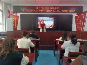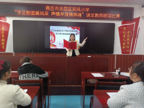“字正腔圆展风采 声情并茂铸师魂”——商丘市示范区和风小学举行“字正腔圆展风采,声情并茂铸师魂”语文教师朗读课文比赛诵读是教学中的重要内容,是每一位教师必备的基本功。为展示教师风采,进一步提高教师专业素养,丰富广大教师的校园生活,营造浓郁的书香氛围。11月3日下午,商丘市示范区和风小学举行“字正腔圆展风采,声情并茂铸师魂”语文教师朗读课文比赛。 本次美文朗读比赛参赛对象4-6年级青年语文老师,在高年级语文教研组长毛慧老师精彩的主持下拉开了帷幕。