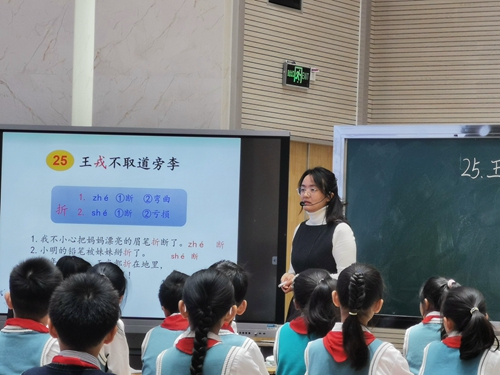 商颂秋意浓 教研留秋声——安阳高新区商颂小学语文优质课比赛时间:2021-11-04 11月4日,安阳高新区商颂小学所有语文老师,聚集多功能厅,拉开了本学期语文优质课活动的序幕,马新旺校长和王文明副校长带领大家立足真现场,聚焦真问题。 郭培老师执教的一年级《ang eng ing ong 》在游戏中闪亮登场。郭老师带领孩子给拼音找朋友,组词语,在快乐中牢记四个后鼻韵母。 张凤莉老师激情澎湃的课堂传来朗朗读书声,五个前鼻韵母在孩子口中熟读成诵。他们开火车读,拍手读,跟节奏读。给韵母宝宝找朋友配图片,让拼音宝宝在悄无声息中浸润孩子心田。 沉稳优雅的张紫薇老师和五(4)班孩子共读《长相思》。孩子们摇头吟诵,徜徉诗海,走进纳兰的生活,脚踏出征之路,倾听风雪之声,重现从军之景,倾诉思乡之情,挥笔留住心情,撼动后人乡情,回味无穷。 博学干练的祖爱梅老师和四(6)班孩子共品《王戎不取道旁李》她带着孩子从课题探寻,王戎是谁?为何不取道旁李?尝试初读、速读、竖读、互读、节奏读、韵味读,借助各种方法理解古文意思,善观,机智的王戎跃然纸上。 端庄大气的王梦雪老师和孩子们共品《司马光》。从复姓“司马”开始探讨古文的一字之美,到游玩地点的趣说,“戏于林”、“戏于园”,再到危险来临时孩子们的惊慌失措与无助,伶俐聪明、遇事冷静的司马光从孩子中间脱颖而出。孩子们对古文的喜爱溢于言表,课堂教学的目标水到渠成。 睿智机敏的张曼老师引领大家共览《美丽的小兴安岭》。整个课堂张老师带着孩子们踏入绿色的海洋,找寻春天的勃勃生机,观赏夏天的鲜花盛开,体会秋天的落叶飞舞、物产丰富,感悟冬天的寂静与灵动。让在场所有人身临其境,沉醉其中。 风趣幽默的苗洁老师带着孩子走进寓言故事《坐井观天》。聆听青蛙和小鸟的对话,洞悉它们争辩的原因,扮演故事中的人物,让孩子感同身受,明白故事中的道理。 文静婉约的王慧杰老师,执教的《葡萄沟》带给大家一场视听盛宴,从文中发现葡萄的色彩,从字里行间品尝葡萄的美味,从文字背后体会维吾尔老乡的热情好客。 八位老师精妙绝伦的课堂展示,是一场真正的教学方法的交流碰撞,教学智慧的灵动闪现。 商颂语文教研活动,在参与中成长,在碰撞中感悟,在交流中提升,教师表示:始终教研不改,初心不忘,潜心酝酿筹划教学之春的归来。 |