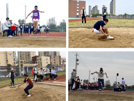 沙坑前一长队运动健儿做着热身活动 一个接一个地 蓄势 起跳 降落 像是腾跃的飞人 翱翔于广阔天空再平稳落地 超越自我 跳脱引力