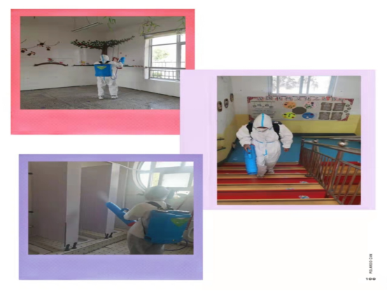 老师们对幼儿园教室、寝室、走廊、厕所等幼儿园的里里外外、上上下下、方方面面都进行了全面彻底的清洁和消毒,做到环境净化、美化,做到卫生消毒、打扫到位。 在这一次卫生打扫及消毒工作中,老师们积极性高涨,大家都秉着“一切为了孩子,为了孩子的一切”。我们的大型消毒工作也没有落下,刘老师进行喷洒消毒。