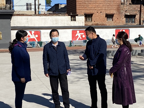文峰区领导深入安阳市东南营小学督导疫情防控工作时间:2021-11-08 11月8日,文峰区区委常委、宣传部长、副区长冯滨,教育局局长靳建锋、副局长陈红桃一行5人到安阳市东南营小学对学校疫情防控工作的部署落实情况进行了督导,并对下一步工作提出指导意见。 督导组一行详细询问了学校疫情防控工作的开展情况,对学校校门管控、值班值守、校园消毒、应急处置、物资储备等防疫管理情况进行详细了解。校长冯芳从学生入校健康监测、学校临时隔离点、隔离室设置、校园教室消毒、晨午检等方面工作进行了详细介绍。 冯部长对学校疫情防控工作给予了充分的肯定,同时强调:面对疫情防控严峻复杂形势,学校要真正紧张起来,落实落细疫情防控各项举措,加强健康教育,大力倡导校园爱国卫生运动,引导师生落实戴口罩、勤洗手、常通风、不聚集、一米线、扫码测温和疫苗接种的“6+1”防控措施,学校要增强疫情防控的责任感、紧迫感,坚持把师生生命健康安全放在第一位。 安阳市东南营小学表示在接下来的工作中将会规范周密做好疫情防控工作,根据要求不断完善工作方案,切实把广大师生的生命安全和身体健康放在第一位,发挥教育实效,上好“疫情”这门课。 |