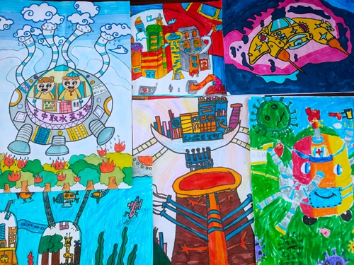 学生让科技插上梦想的翅膀,用蜡笔、水彩笔在画纸上勾勒未来科技生活的蓝图。画面虽然各不相同,共同的是学生在科技与绘画的世界中尽情地遨游,充分发挥着自己的想象力和艺术创造力。一幅幅奇思妙想的作品给评委留下了深刻印象。校评委组选出了15张精品参加安阳市第三十届青少年科技创新大赛。