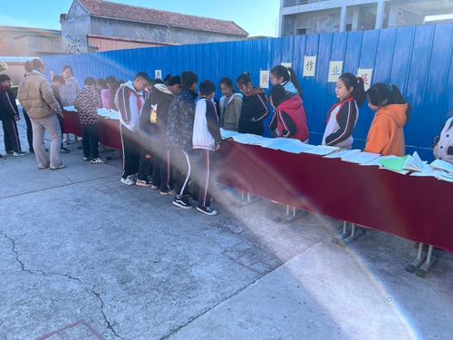 各班学生利用下课时间到展示台前参观,他们认真欣赏,学习作业中清晰美观的字迹、标准的格式,对优秀作业都赞叹不已!