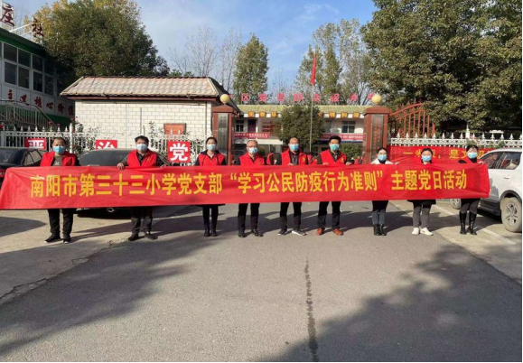 南阳市第三十三小学党支部开展“学习公民防疫行为准则”主题党日活动为了提高全社会防疫意识,做深做细各项防控工作,坚决守护好人民群众的生命安全和身体健康,11月12日上午,南阳市第三十三小学党支部开展了“学习公民防疫行为准则”主题党日活动,学习《关于在全市开展“学习公民防疫行为准则”主题党日活动的通知》(宛组电﹝2021﹞43号)和《公民防疫行为准则》。
