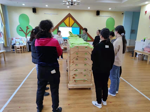 活动结束后,教师兴致昂扬,互相切磋整理床铺的方法。通过这项比赛活动,保育教师掌握了科学的工作方法,业务能力也得到了提高。