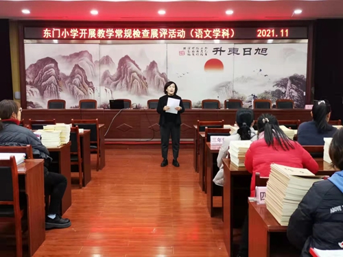 安阳市东门小学语文学科教学常规展评活动时间:2021-11-20 11月19日,安阳市东门小学开展教学常规语文学科展示评比活动。展评内容包括教案展评、作业展评、试卷命制展评。 教案展评中,显示出教师备课有深度,教学有温度,每一篇教案都承载了语文老师的爱与责任。作业展评从练字、作文和特色三方面进行。学生的作业,一笔一划都彰显了学习态度,一纸一墨都呈现了习惯养成教育的重要性。对于作文,老师们的批改一丝不苟,字里行间仿佛是与学生的无声对话,一字一句都见证着语文老师们埋头苦干的身影。五年级语文老师创新布置的语文作业——语文小报和连环画,让语文学习更加五颜六色。 试卷命制的展评,充分体现了教师的内容构思、设计意图、理念支撑,每一份试卷命制的过程都艰难曲折,教师都经过了反复思量考验认证,研磨修改。 活动结束后,王主任充分肯定了每一个语文人的努力,好的榜样就是最有力的宣传和动员,优秀作业展评为教师提供了相互学习的舞台,通过这次学习,老师不仅相互借鉴了很多宝贵经验,同时也加强了老师之间的交流! |