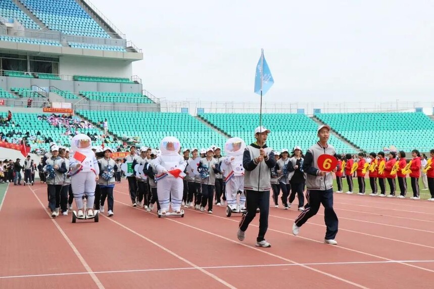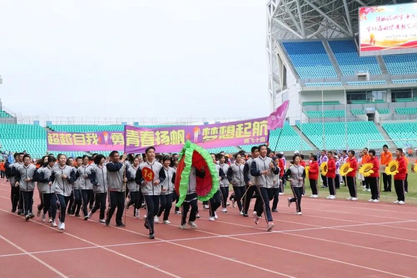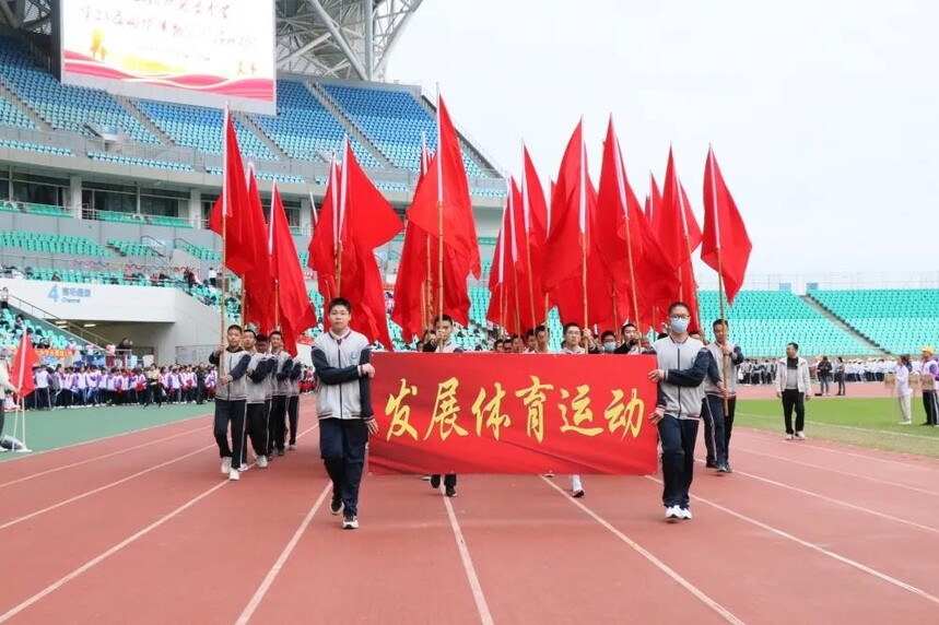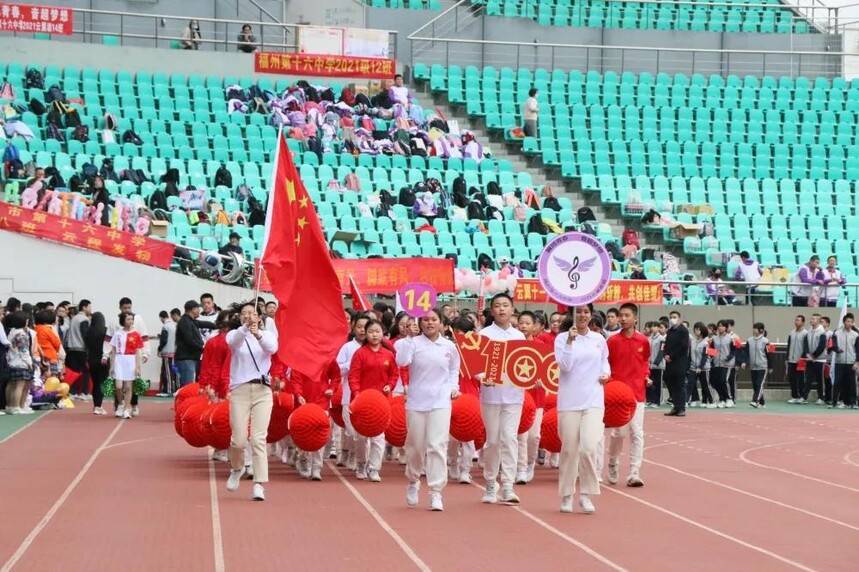 信仰铸百年辉煌 拼搏展毓英风华—福建省福州市第十六中学第51届田径运动会时间:2021-11-21 教育文摘周报11月21日福建电(记者 陈隆焕 陈强 )金风送秋爽,毓英点苍穹。2021年11月19日—20日,福建省福州市第十六中学第51届田径运动会在福州海峡奥林匹克体育中心举行。福州市第十六中学校领导及家长委员会代表出席了本届运动会开幕式。 本次开幕式由福州市第十六中学教务处陈文水主任主持。开幕式上,福州市第十六中学郑其瑞校长首先代表校运会组委会致词。他对本次运动会的召开表示了热烈祝贺,对全体运动员、裁判员、工作人员致以崇高的敬意和衷心的感谢,对入场式表演给予了高度评价和赞扬。他表示2021年是非同寻常的一年,是使中国人自豪的一年,今年也是十六中学落实素质教育,实现强校战略,稳步发展的一年。每年定期召开的体育运动会,是对学校体育成果和体育竞技水平的一次大检阅,更是十六中学师生精神风貌和综合素质的一次集中展示。他希望我们秉承百年毓英优良的体育传统,将毓英人在体育中的拼搏精神发扬光大,并祝愿全体同学赛出风采,取得佳绩。裁判员代表吴宜椿老师庄严宣誓:服从指挥,严守纪律,公平裁判。最后运动员代表郑宇涵同学发言,他表示一定在赛场上奋力拼搏,赛出毓英学子的风采。 硬核登场英姿飒,朝气蓬勃少年郎。国旗、会旗、红旗、鲜花方阵依次通过主席台。刚劲的步伐、坚毅的眼神、笔挺的身姿、抖擞的精神展现出昂扬的斗志、豪迈的气概。为国旗添彩,为国旗增辉,为国旗壮威,为祖国增光,是最崇高的信仰。 来自各个年段的跑操队列激扬登场。意气风发的初三年段,两两组合,汇聚成一道七色彩虹,象征着通往梦想的桥梁,更象征着到达中考成功彼岸的企盼与信念;壮志凌云的初二年段以冬奥会为主线,融入各班文化特色,在整齐的行进中诠释了“更高、更快、更强”的冬奥精神,彰显了毓英少年的士气和腾飞大国的风范;逞飒爽英姿,逐光前行,在建党百年之际,风华正茂的云翼级,演绎百年时光的流转,再现筚路蓝缕的历程,他们不闻号角,却已整装待发,云翼展翅,强国有我! 南湖灯火照天明,伟业百年寰宇惊。为献礼党的百年华诞,毓英学子以精彩的表演表达拳拳之心。“我们都是追梦人,千山万水奔向天地跑道”,甜甜的歌声,可爱的笑脸,毓音合唱团率先用追梦的表态向祖国献礼。有梦、追梦、圆梦,我们一直在路上。 初三年段带来的《我爱你中国》用悠扬的小提琴和整齐的舞蹈表达了毓英学子们对祖国深沉持久的爱。梦在前方,路在脚下。为了祖国,我们时刻准备着。 咏春赫赫,刚劲凌厉,功夫扇舞,轻盈朝气。凌云学子带着饱满的热情,诠释了武与舞的交汇,刚与柔的融合,传统与青春的碰撞。壮志凌云致青春,武魂舞韵献中华。 百年弄潮,少年扬帆,乘风破浪,振兴中华。云翼级的同学们用他们的舞蹈表达了自己必将肩负起少年之使命,用觉醒之志努力拼搏,延中华百年之梦想。 一跃而起如翱翔雄鹰,奔跑疾驰如离箭之弦,奋力一掷似完美弧线。半蹲、蓄力,奋力起跳,平稳落地,同学们如海上的浪花,似浪花上的云燕。灵巧的速跑,轻轻一跃,小小横杆即使落下,也仍有不屈的信念。 短跑运动员迈着矫健的步伐在观众们的竭力呼喊中奋力冲刺,去迎接终点处属于他们的掌声;每一次奔跑的脚印都是超越极限,每一次的交接都是满怀憧憬,他们势如破竹,锐不可当。一根小小的木棒,承载了他们的无限希望;一根长绳串起的是队伍的凝聚力。他们终将不负众望,扶摇直上。 我们有着不顾一切的勇气,空掷一切的豪气,划破长空的浩然之气。轻如飞燕,东风也轻轻地推了一把,朗朗力道在空中运转,铅球落地,掷地有声。 走上讲台,他们侃侃而谈、教书育人;面对学生,他们谆谆教诲,亦师亦友;而在运动场上,他们为本届运动会献上了一份趣味盎然的厚礼。专注于培养祖国栋梁之才的老师们,放下繁重的工作,在运动场上尽情挥洒汗水,释放激情。在本次教工趣味比赛上,设置了一分钟踢键子、8*40米插秧收割、拔河、击鼓送红军等教工集体项目。教职工拔河比赛的现场加油呐喊声四起,场内老师奋力拼搏,热闹非凡。活动以趣味为主,但项目都特别考验团队协作精神和拼搏精神,让我们看到了平日里站在讲台前的老师们也有能文善武的另一面。 绿茵球场上正在举行一场激烈而公正的师生足球对抗赛。双方展开了精彩的竞技。老师们脚法娴熟,配合默契,更不乏精彩的临门一脚,学生们并没有因为和老师踢球而感到拘谨,大家你来我往,你争我抢,绝不亚于任何一个绿茵场上的精彩赛事。 形态各异的气球、迎风绽放笑容的风车、乘风飘扬的各色旗帜、响亮激昂的口号横幅成了每一个班级布置的亮点。同学们不拘泥于简单的元素,还颇具创意地以手绘的方式描绘出班级赛程表。心灵手巧的孩子们还制作了加油牌为运动员们应援。把班级理念融入大本营的布置中,丰富地展示班级风采,激励同学们爱班爱校,为了集体荣誉奋勇拼搏,这就是运动会创意大本营的用心所在。这些富有创意的设计无不彰显着毓英学子的智慧和风采。大本营必将是运动健儿们最坚实的后盾。 百年征程,波澜壮阔,毓英学子,风华正茂。在党的百年华诞之际,毓英学子用运动场上奋勇的姿态和昂扬的风貌书写热血青春,我们必将肩负起“少年强则国强”的使命,以拼
