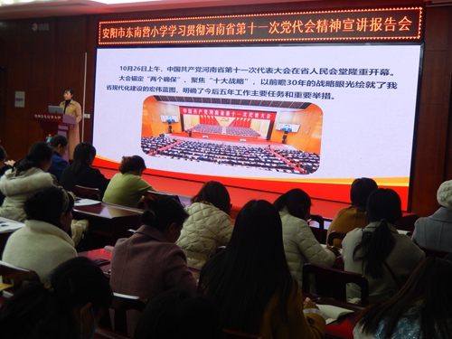 昂首迈进新征程 奋勇争先更出彩——安阳市东南营小学党支部深入学习省十一次党代会时间:2021-11-22 近日,安阳市东南营小学党支部持续深入开展全体党员、全体教师学习贯彻河南省第十一次党代会精神宣讲活动。 11月15日,校党支部书记冯芳同志利用全体职工大会传达了会议精神,带领全体党员、教师学习了楼阳生书记在省十一次党代会上的工作报告要点。同时,结合学校教育教学工作实际,切实把学习贯彻省第十一次党代会激发的精气神,转化为做好教育改革,发展各项事业的强大动力。 11月16日,东南营小学党支部召开党代会精神交流讨论会。全体党员集中观看省第十一次党代会宣讲视频并深入学习省十一次代表大会精神。 11月19日,为继续推进学习成效,准确把握精神实质和核心要义,安阳市东南营小学党支部通过“自主学习+集体学习”的形式,扎实开展了学习贯彻省第十一次党代会精神的活动。在自主学习的基础上,各党小组进行了交流和研讨。大家深刻认识到省第十一次党代会的意义,认清了教育人的历史使命,明白了教育在现代化河南建设全局中的重要地位。 生逢盛世,肩负重任。党员表示:定要努力学习好、落实好会议精神,在黄河孕育的中原沃土上,在学校教育改革事业的征程中,贡献自己的力量。 |