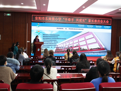 安阳市东南营小学及祥宇小学一年级家委会成立大会时间:2021-11-22 11月19日,安阳市东南营小学、祥宇小学在南校区报告厅举行了“手牵手,共成长”一年级家长委员会成立大会活动。 东南营小学一(1)班家委会委员代表苏丽娟发言,她的发言真诚表达了对学校教学理念、教育教学的认可,对老师敬业精神的钦佩。表示一定会全力支持学校和班级工作,认真履行家委会职责,真正起到家校沟通的桥梁和纽带作用。 学校工会主席杨晓惠介绍了近年来学校的发展状况、办学理念和成立家委会的意义,并详细的从真诚沟通、善于协调、出谋划策、做好表率四个方面与家长阐述了家委会的基本工作范畴及工作实例。她希望,通过家校共建、共育,完善学校、家庭、社会三位一体的教育体系,营造良好的教育环境,实现让每个孩子都有属于自己的跑道的目标。个个成人,人人成才,能够成为家庭的希望、学校的骄傲、国家的栋梁。 会议最后,学校向家委会委员征集学校工作意见及建议,家长们就校园安全、家校沟通、教学管理等进行了填写。 |