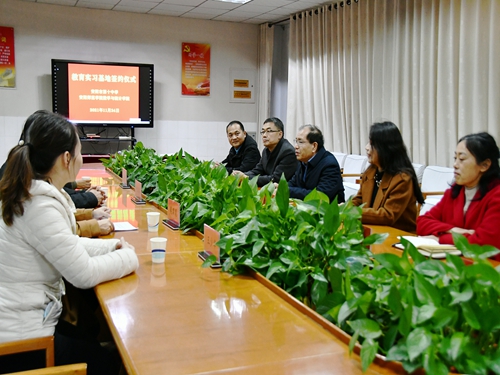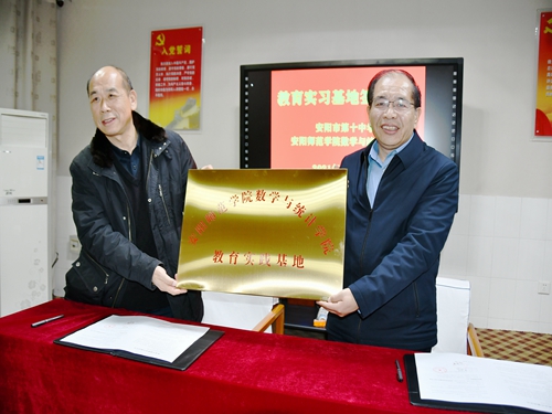 安阳市第十中学与安阳师范学院教育实习基地签授仪式时间:2021-11-25 11月24日,安阳市第十中学举行了安阳师范学院数学与统计学院“教育实践基地"授牌仪式。安阳师范学院数学与统计学学院严谦泰院长、副院长连颖颖教授、莫君慧副教授及王少华老师、第十中学党支部闫金堂书记、朱智勇副校长、张如鹏副校长、政教处主任睢玉红、教务处主任张兵以及数学教研组组长郝国庆一起出席了授牌仪式。 首先闫金堂书记致辞,向前来参加仪式的领导介绍了十中的基本情况,并对来宾表示诚挚的欢迎。严谦泰院长在了解了学校对实习生和指导教师管理制度、学校专业教师辅导实习教师的实际情况后,表示实习基地为广大实习教师搭建了实践、锻炼的平台,并衷心希望实践基地能在双方的共同努力下实现互利共赢。 随后,双方领导签订了《第十中学与安阳师范学院教育实习基地》协议,并举行了授牌仪式。 安阳市第十中学与安阳师院数学与统计学院“教育实践基地"的挂牌,进一步加强了十中和高校之间的合作交流,学校表示:必将有效利用这一宝贵资源为教育的发展注入新的生机和活力,努力打造园丁遍栽桃李树,学子尽作栋梁才的良好局面。 |