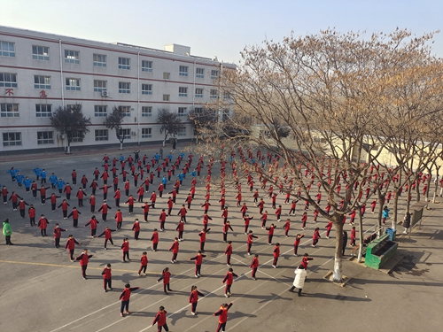 殷都区育才中学举行大课间比赛活动时间:2021-11-28 为全面落实“双减”政策,丰富校园文化活动,规范大课间的管理,11月25日至26日,殷都区育才中学举行了阳光大课间比赛活动。 六至八年级比赛内容为本学期新编排的体能训练:高抬腿、小步跑、跨栏等项目。学生挺直背部,目视前方,动作或舒展有力,或节奏欢快。无论上举、上摆、扩胸、曲臂,还是抖臂、抖腿、深呼吸,一招一式,有模有样,尽显风采,一班更比一班强。展现了育才学子的青春活力。 一至五年级比赛内容为韵律操、广播体操。学生个个精神抖擞,动作刚劲有力,明快流畅,迸发出无限活力与激情,呈现出体操动作的力与美。整齐划一的动作向所有的教师、评委们证明了他们平时努力训练的效果,展现了学生们积极参与体育锻炼、健康成长和奋发向上的精神面貌。 本次大课间比赛以“双减”为契机,对以往的大课间内容进行了重新编排、更新换代,训练期间,体育老师和班主任老师付出了大量心血。学生也表示:定会把体育锻炼坚持下去。 |