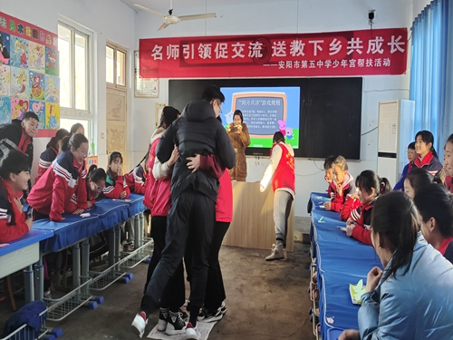 名师引领促交流 送教下乡共成长——市五中到文峰区东风小学少年宫开展帮扶活动时间:2021-12-07 为让学生树立自信,促进人格健康发展。12月6日,安阳市第五中学团委书记张会昌和心理学教师师俊琳一行五人,来到文峰区东风小学,针对五年级学生希望被他人鼓励、肯定,挫折中易产生自卑和无力感的特点,设计了别有风趣的“夸夸美”心理健康团建活动。整个活动生动有趣,学生积极配合,踊跃参加。 破冰活动中,在师俊琳老师鼓励下,学生按规则做自我介绍,脸庞上洋溢着自信的笑容。《勇敢的小裁缝》活动中,小裁缝的勇敢深深打动了学生,他们陷入了思考,老师循循善诱,让学生懂得了:凡事应量力而为,关注自身的优势。并将自己的感受写在了心形便利贴上。 同舟共济活动中,师俊琳老师将参加游戏的学生分成7组,在规定的统一时间,所有人要按照游戏规则,脚都站到一张报纸上,看哪一组坚持的时间最长。在一片欢声笑语中学生同心协力、优势互补、团结协作,更好的完成了任务,置身于一个团结和谐的集体才会更好地促进个人的成长进步。 经过一系列活动的亲身体验,学生不仅更好地认识了自己,收获了自信,更懂得了生活中的每一次经历对于我们来说都是宝贵的财富。最后学生在《你笑起来真好看》歌声中结束了快乐的课堂。 本次活动给学生提供了一处心灵的栖息天地,让学生学会了欣赏自己,增强了自信,培养了学生的合作精神、团队意识和集体观念。同时也成为了东风小学学生心理健康教育工作的新起点。 |