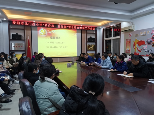 依据市委统一安排部署,在文峰区委的号召下,12月6日,安阳市北门西小学结合党史学习教育,在全体教职工中开展了“转作风、提效能”警示教育整顿工作会议。