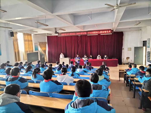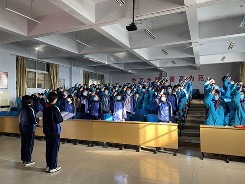 殷都区育才中学举行新团员入团宣誓仪式时间:2021-12-14 为庆祝中国共产党建党100周年,深入落实总书记对青年提出的爱国爱民、锤炼品德、勇于创新、实学实干四点重要要求。12月13日,殷都区育才中学在合堂教室隆重举行了新团员入团宣誓仪式。出席活动的领导有校长李文锋、党支部书记吴志海、副校长齐红霞、党支部办公室主任史天锋。 入团仪式上,党支部办公室主任史天锋宣读了新团员名单,学校领导和优秀老团员代表给新团员颁发团员证并佩戴团徽,全体新团员面向团旗,庄严宣誓。老团员代表范家瑄带领大家学习了《团章》中有关团员权利和义务的条款,新团员代表史雨歌和优秀老团员代表刘嘉栋先后进行了典型发言。团支部书记韩小丹代表校团总支委员会对新团员表示祝贺,同时对所有队员提出三点希望:一是希望队员确立与时俱进的学习观,二是希望队员始终保持奋发有为的精神状态,三是希望队员在心中培植一种感恩的思想。最后,副校长齐红霞发表总结讲话,希望新老团员充分体现共青团员的先进性,在学生中发挥榜样示范引领作用,用实际行动为团旗增光添彩! 此次入团宣誓仪式让学生备受鼓舞,他们纷纷表示:一定严守纪律,勤奋学习,乐于奉献,甘做表率,为社会主义事业,为自己的人生谱写更加华美璀璨的乐章。 |