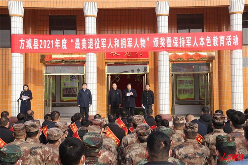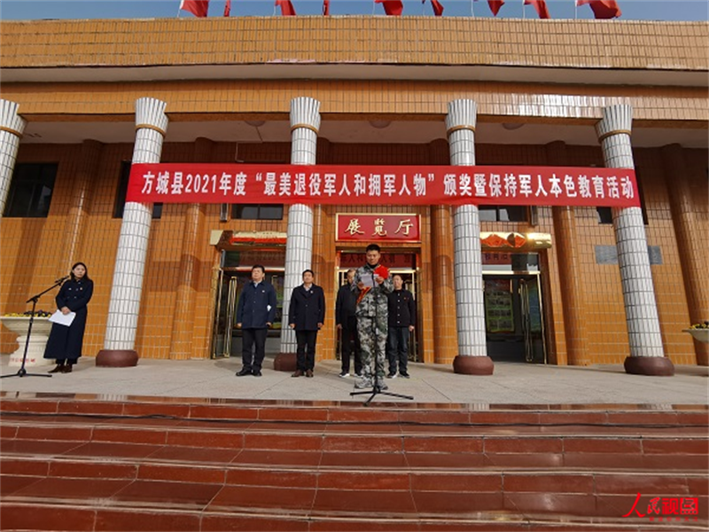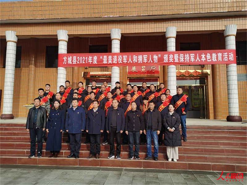 河南方城:举办2021年度“最美退役军人”颁奖典礼暨保持军人本色系列活动来源:人民视点 人民视点河南讯(倪申 张琴 通讯员 张栋察 罗学平 胡建峰)榜样催人奋进,使命呼唤担当。12月14日,由河南省方城县委宣传部、县人武部、县退役军人事务局联合举办的2021年度“最美退役军人和拥军人物”颁奖典礼暨保持军人本色系列活动在杜凤瑞烈士纪念馆举行。南阳市退役军人事务局党组成员、服务中心主任张金山,方城县政府党组成员、公安局局长侯大同同志,方城县退役军人就业创业促进会会长毛玉中同志,方城县委宣传部常务副部长任怀卿同志出席参加了本次活动。