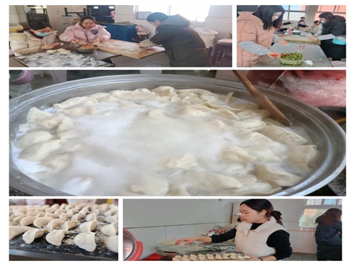上午,没课的老师来到厨房齐动手,一起包饺子。外面气候寒冷屋内热火朝天,老师们的谈笑声充满了整个食堂。