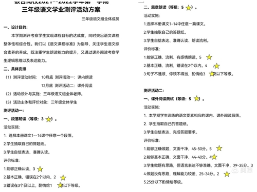 安阳市银杏南校三年级语文阶段性评价时间:2021-12-22 12月22日,安阳市银杏南校开展了三年级语文阶段性评价活动。 在准备阶段,年级组教师制订了实施方案。采用星级评价的方式进行阅读闯关。本阶段给学生时间,让学生互读,或自己去读懂。学生在读中求知、读中求智。把理解语言与训练朗读交融在一起。给学生一定的阅读时间,与文本对话,体会文字之美。 在阅读理解训练中,让学生用朗读理解文章内容、体会文章思想感情;借助巩固实操,对话文本的重要方法培养语感,体会文章所表达的意境,做到入境动情。活动最后,通过评星对学生进行正面引导,让学生生动、活泼、健康、主动、全面发展。 随着双减政策的落地,银南语文组积极消除应试教育的影响,正确认识和理解素质教育的要求。双减之下,为减轻压力,激发兴趣,把阶段性教学评价变成了训练学生思维能力和创新能力的摇篮。让学生在语文学习中发现美、历练美、升华美、创造美。 |