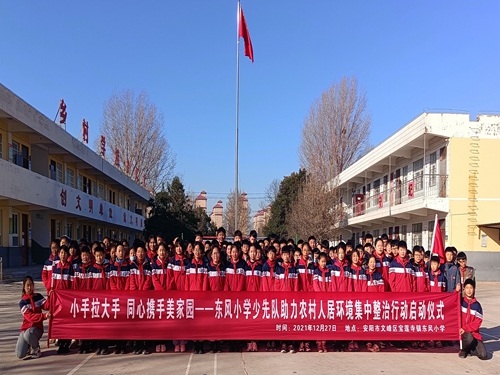 文峰区东风小学少先队助力农村人居环境集中整治行动启动仪式时间:2021-12-29 为改善安阳农村人居环境,提高村民幸福生活指数,提升城市新形象、新面貌,12月27日,文峰区东风小学少先队积极响应共青团安阳市委、安阳市少工委号召,开展“小手拉大手,同心携手美家园”——少先队助力农村人居环境集中整治行动启动仪式。 升旗仪式上,五一中队辅导员周真老师宣读《东风小学少先队助力农村人居环境集中整治行动倡议书》,号召队员们积极行动起来,争做农村人居环境整治的传播者,争做农村人居环境整治的维护者,争做农村人居环境整治的劝导者,争做农村人居环境整治的践行者。全体队员一起宣誓,铿锵的誓言传递着队员们将积极参与到农村人居环境整治行动中去的决心。董晨毅校长讲到要从小事做起、从身边做起,一起为了美好生活努力。 学校电子屏滚动出现农村人居环境集中整治行动宣传内容,营造良好宣传氛围。 升旗仪式后,各中队召开了主题为东风小学少先队助力农村人居环境集中整治行动的中队会。 学生表示要行动起来,争当文明生活的倡导者、时代新风的传播者、美好环境的捍卫者,带动家庭、辐射社会,助力我市农村人居环境的整治与提升。 |