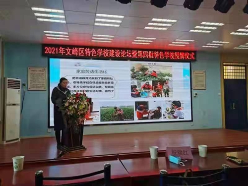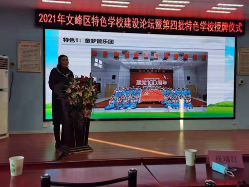 文峰区东风小学在2021年区特色学校建设论坛中汇报展示时间:2021-12-31 艺术教育是教育教学中不可缺少的组成部分,是美育教育的一个重要环节,对促进学生全面发展具有不可替代的作用。文峰区东风小学从实际校情出发,坚持学生智力发展与艺体教育两翼齐飞的思路,渐渐形成了以“管乐、阳光大课间、舞蹈、葫芦丝、劳动实践”一系列活动为特色的办学之路。 12月30日,在文峰区二实小举行的2021区特色学校建设论坛暨第四批特色学校授牌仪式中,孙艳芳老师代表东风小学在大会上进行了题为《彤生艺林,筑梦飞翔》的交流汇报发言。孙老师从学校简介、理念的提出、成果汇报和展望未来四个方面对该校一年来特色校工作成果进行了汇报,得到了与会领导和老师的赞同。陈红桃局长评价说:“东风小学劳动实践基地的开发,既是素质教师教育和当前“双减”教育的需要,更大大丰富了农村孩子的课业生活,让校园成为了孩子们健康、快乐成长的乐园。” 2019年,东风小学被文峰区教育局命名为“文峰区第三批特色学校”。近两年来,经过不断努力,2019年11月,东风小学大课间被评为河南省第四届中小学最美大课间一等奖,河南省第四届中小学体育艺术一校一品特色学校;2020年12月,东风小学被授予河南省陶行知教育思想实验学校;2021年2月,东风小学被文峰区教育局评为学校管理优秀单位,6月东风小学被评为安阳市最美乡村小学,11月,东风小学管乐团在安阳市第三届学生器乐节比赛中荣获二等奖,12月东风小学被评名为第二批河南省中小学劳动教育特色学校。 乘风破浪会有时,直挂云帆济沧海。在新的挑战和机遇面前,东风小学全体教师表示将在董晨毅校长的带领下,继续发扬“全力以赴,持之以恒”的东风精神,以海的胸怀,山的信念,高瞻远瞩,为生长在这片沃土上的农村孩子,插上梦想的翅膀,乘着东风飞翔! |