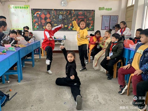 在班主任老师的精心组织、家长代表的热心支持、全体队员积极参与,大家动脑动手,齐心协力,布置场地。教室变成了辞旧迎新的缤纷乐园,武术、歌舞、器乐、小品、游戏,学生尽情展示、开心分享。
